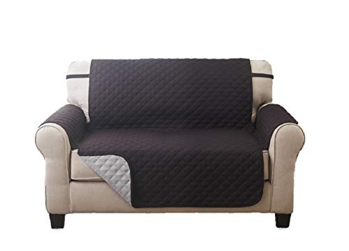 Deluxe Reversible Loveseat Slipcover Furniture Protector, Seat Sofa, Chair, Couch Quilted, Anti-Slip 2 Inch Strap, Machine Washable, Slip Cover Throw for Pets, Dogs, Cats, Kids - Coffee / Tan