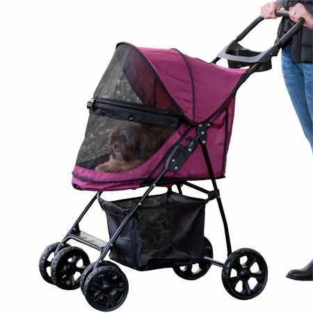 Pet Gear No-Zip Happy Trails Lite Pet Stroller for Cats/Dogs, Zipperless Entry, Easy Fold with Removable Liner, Storage Basket + Cup Holder