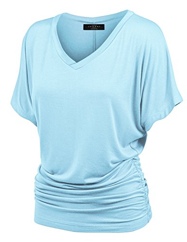 Made By Johnny MBJ Women's Solid Short Sleeve Boat Neck V Neck Dolman Top with Side Shirring-Made in U.S.A.