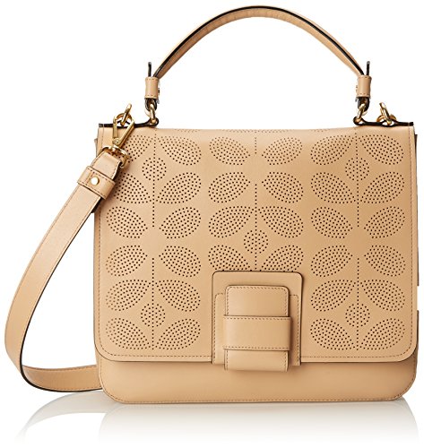 Orla Kiely Sixties Stem Punched Leather Ivy Shoulder Handbag, Fawn, One Size