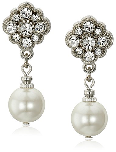 1928 Jewelry Simulated Pearl and Crystal Drop Earrings