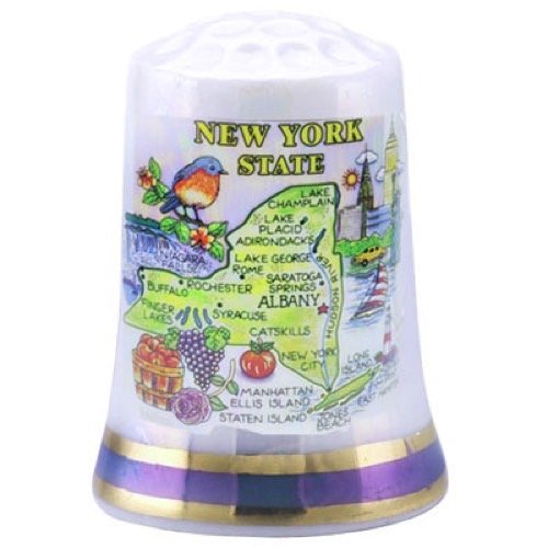 New York State Map Pearl Souvenir Collectible Thimble agc
