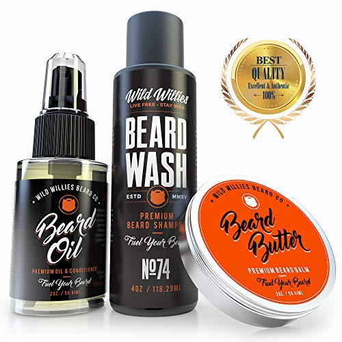 Essential Beard and Mustache Grooming Kit for Men – USA Made Gift Set Soothes Irritated, Dry Skin, Reduces Acne & Grows Your Beard Faster – Beard Oil, Balm Conditioner & Shampoo Wash