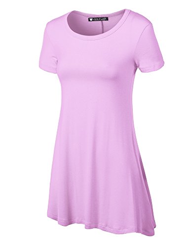 WT770 Womens Short Sleeve Handkerchief Hem Tunic L Lilac