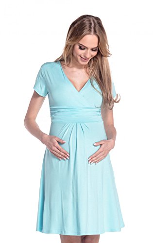 Happy Mama. Women's Maternity Jersey Flare Baby Shower Dress Short Sleeves. 108p (Light Blue, US 6, S)