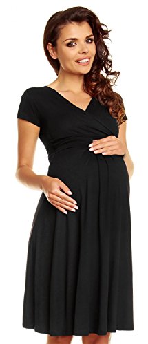 Zeta Ville - Women's Maternity Wrap V-Neck Summer Dress - Short Sleeves - 108c (Black, US 8, M)