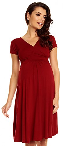 Zeta Ville - Women's Maternity Wrap V-Neck Summer Dress - Short Sleeves - 108c (Crimson, US 18, 4XL)