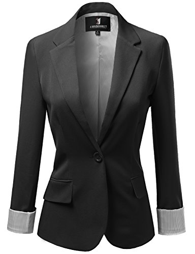 Awesome21 Women's Solid Long Sleeves One Button Closure Side Pocket Inner Stripe Blazer