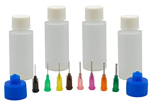 Creative Hobbies Multi Purpose Precision Applicator Super Assortment Set with Four 1 Oz Easy Squeeze Bottles, 8 Tip Sizes, Henna Tattoo Body Art Paint Paper Quilling Glue Oil Epoxy Applicator