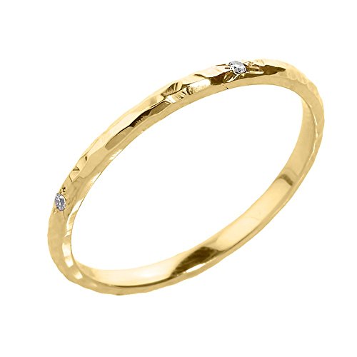 Modern Contemporary Rings Dainty 14k Yellow Gold Hammered Band Stackable Diamond Ring