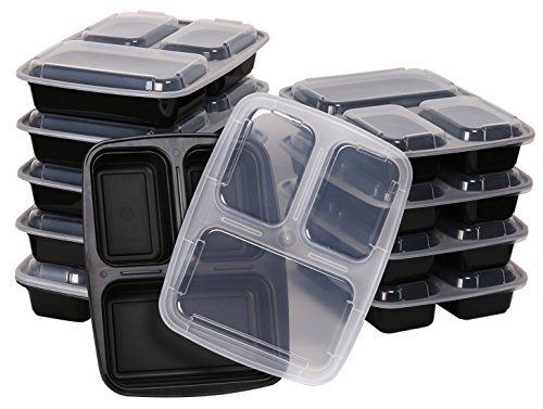 Green Direct Microwave Safe 3-compartment Food Containers with Lids/divided Plate/bento Box/lunch Tray with Cover, Black Bottem with Clear Cover Pack of 20
