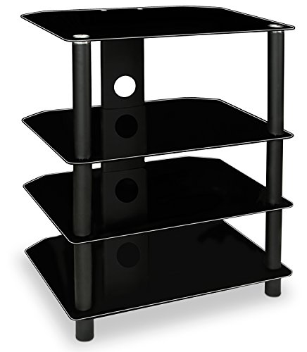 Mount-It! AV Component Media Stand, Audio Tower and Media Center with 4 Tempered Glass Shelves, 88 Lbs Capacity, Black Silk (MI-867)