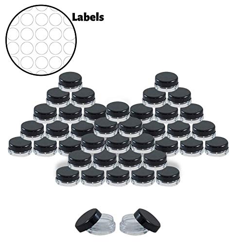 Houseables 3 Gram Jar, 3 ML Jar, 50 pcs, BPA Free, Cosmetic Sample Empty Container, Plastic, Round Pot Black Screw Cap Lid, Small Tiny 3g Bottle, for Make Up, Eye Shadow, Nails, Powder, Paint, Jewelry