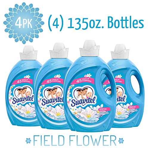 SUAVITEL Fabric Softener, Field Flowers, 102 Laundry Loads, Laundry Supplies, Long Lasting, Sensitive Skin Fabric Softener, Softens Clothes, 135 Ounce Bottle (Pack of 4) (Model Number: 139371)