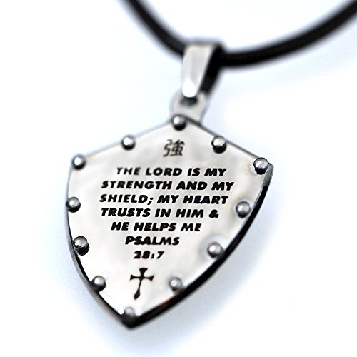 FORGIVEN JEWELRY Psalm 28:7 Cross Shield Pendant Lord is My Strength and Shield
