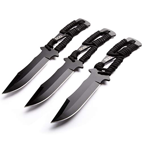 SOG Throwing Knives with Sheath 3 Pack Balanced Throwing Knives Set w/ Paracord Knife Handles and Professional Throwing Knife Sheath (F041TN-CP)