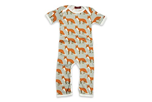 MilkBarn Organic Cotton Short Sleeve Baby Romper Orange Fox (6-12 Month)