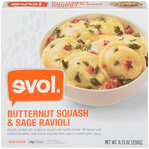 EVOL Butternut Squash and Sage Ravioli, Single Serve, Vegetarian, 12 Grams of Protein Per Serving, 8.13 Ounce (Frozen)