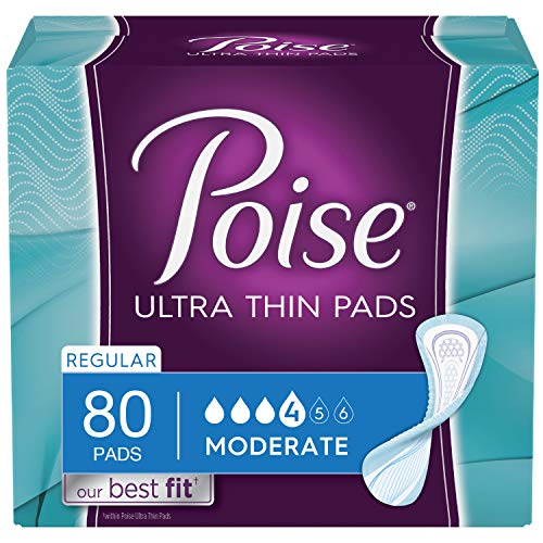 Poise Ultra Thin Incontinence Pads, Moderate Absorbency, Regular, Unscented, 80 Count (4 Packs of 20)