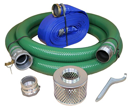JGB Enterprises Eagle Hose PVC/Aluminum Water/Trash Pump Hose Kit, 3" Green Suction Hose Coupled C x KCN, 3" Blue Discharge Hose Coupled M x F WS, 29 Vacuum Rating, 70 PSI Maximum Temperature, 50' Length, 3 ID