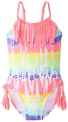 Jantzen Little Girls' Toddler 1 Piece Tye Dye Print Fringe Swimsuit, Pink, 3T