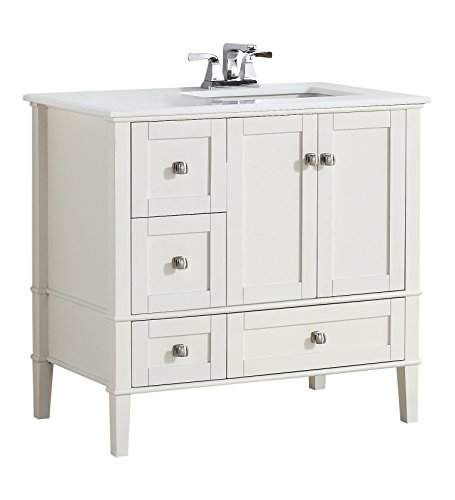Simpli Home NL-HHV029-36-2A-R Chelsea 36 inch Contemporary Bath Vanity in Soft White with White Engineered Quartz Marble Top