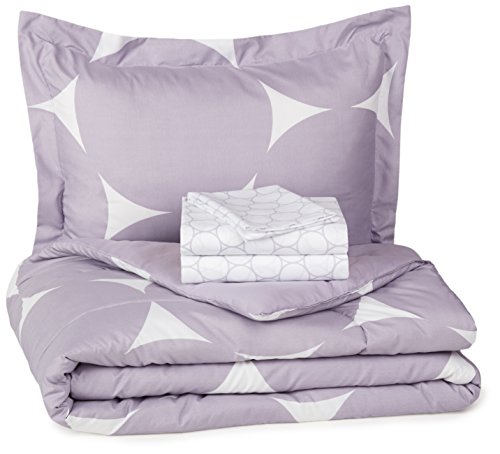 AmazonBasics 5-Piece Bed-In-A-Bag Comforter Bedding Set - Twin or Twin XL, Purple Mod Dot, Microfiber, Ultra-Soft