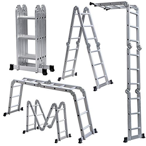 ALEKO FL-12 Multi-Purpose Multiple Position Heavy Duty 12 Step Aluminum Folding Ladder