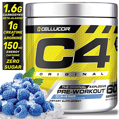 Cellucor C4 Original Pre Workout Powder Energy Drink Supplement For Men & Women with Creatine, Caffeine, Nitric Oxide Booster, Citrulline & Beta Alanine, Icy Blue Razz, 60 Servings