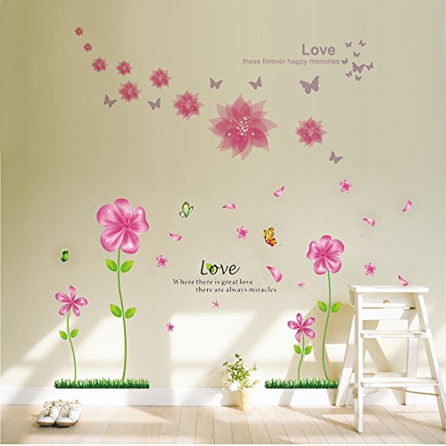 B.GTAGO Lovely Pink Petal Flowers & Butterflies Wallpaper for Living Room Bedroom, Removable Home Wall Decals/Wall Stickers & Murals/Wall Décor/Wallpops, Decorative Painting Supplies