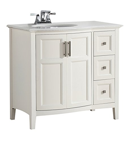 Simpli Home 4AXCVWNRW-36 Winston 36 inch Contemporary Bath Vanity in Soft White with Bombay White Engineered Quartz Marble Top