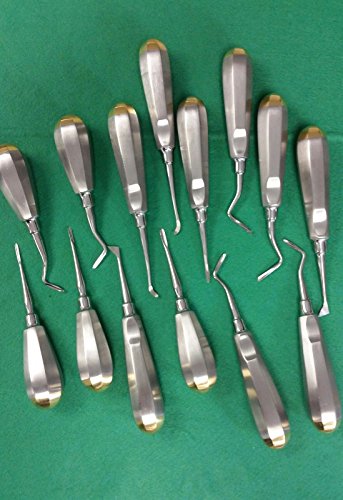 SET OF 10 NEW O.R GRADE Dental Elevators Extraction Surgical Instruments W/ GOLD HANDLE