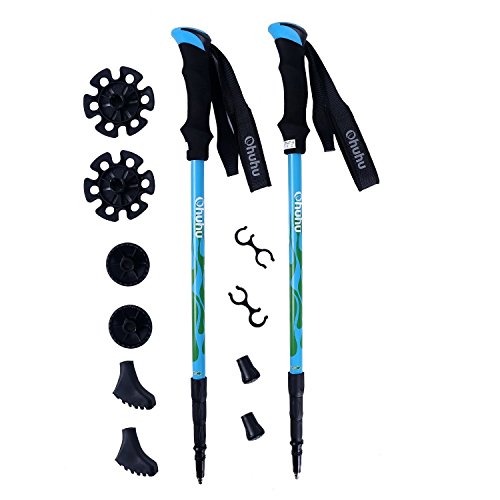Ohuhu 22 Inch to 56 Inch Retractable Anti Shock Trekking Poles/Hiking Poles/Walking Sticks, 2-Pack (22-56'')