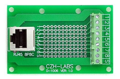 Electronics-Salon RJ45 8P8C Interface Module with Simple DIN Rail Mounting feet, Vertical Jack.