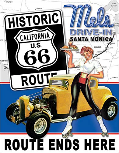 Desperate Enterprises Mel's - Historic Route 66 Tin Sign, 12.5" W x 16" H
