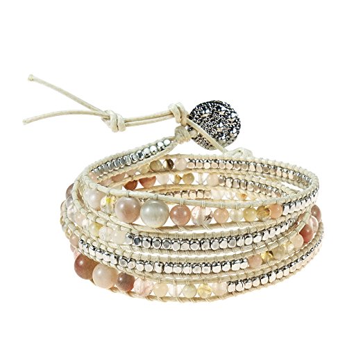 AeraVida Earthy Reconstructed Agate-Colored Glass-Fashion Silver Beads Wrap Bracelet