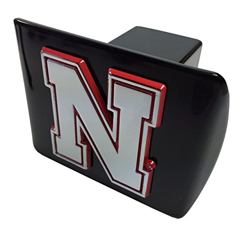 AMG University of Nebraska Metal Emblem (Chrome with red Trim) on Black Metal Hitch Cover (Iron N)