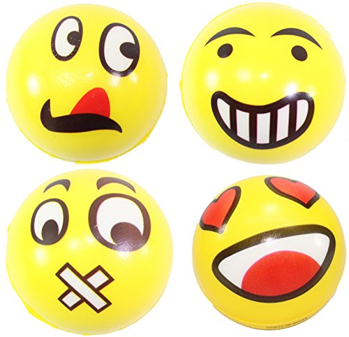 Set of 4 Assorrted Big Happy Face Hand Wrist Finger Exercise Stress Relief Therapy Squeeze Ball