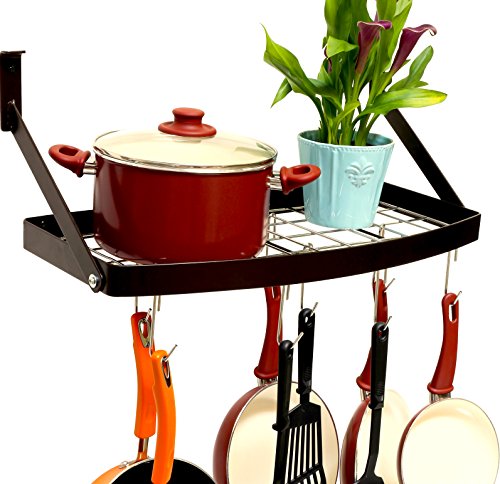 DecoBros Wall Mount Square Grid Pot Pan Rack includes 8 hooks, 25 by 12-inch,Bronze