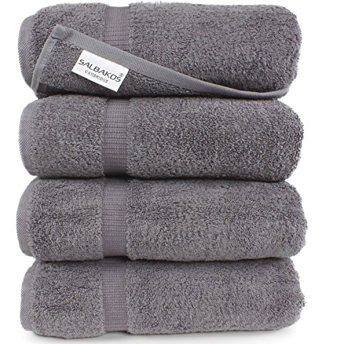 SALBAKOS Turkish Luxury Hotel & Spa 27"x54" Bath Towel Set of 4 Cotton from Turkey - 700gsm Eco-Friendly (Bath Towels, Gray)