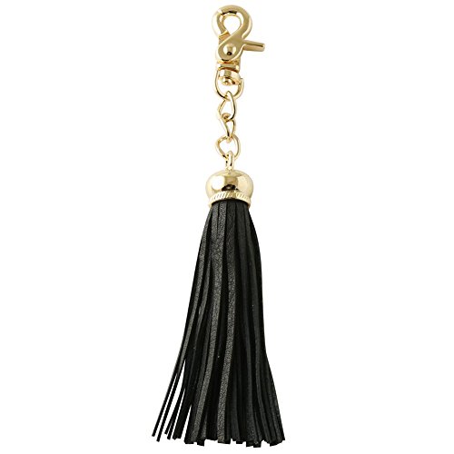 Leather Tassel Charm for Handbags and Cellphone Case Ring (black)