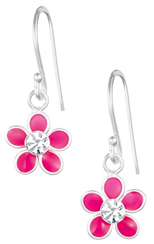 Hypoallergenic Sterling Silver Crystal Pink Daisy Flower Dangle Earrings for Kids (Nickel Free)