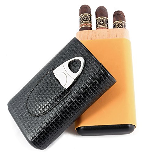 Mantello Executive Genuine Leather and Cedar Wood Cigar Case with Cutter
