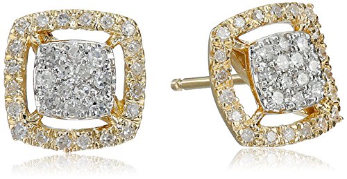 14k Yellow Gold Square Diamond Cluster Stud Earrings (1/4cttw)