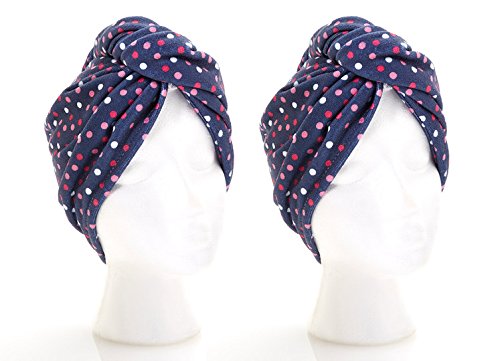 Turbie Twist Microfiber Hair Towel (2 Pack) Navy with Polka Dots