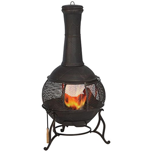 Hampton Bay Cast Iron Chiminea with Screen and Fire Poker, Copper Finish