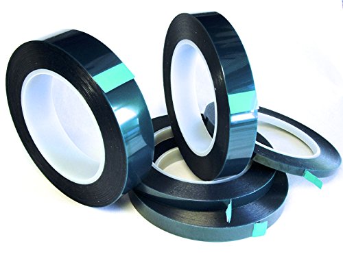 5 Roll High Temp Masking Tape Kit for Powder Coating, Painting, Hydrodip, Sublimation - Green Polyester 1/4", 3/8", 1/2", 3/4" & 1"