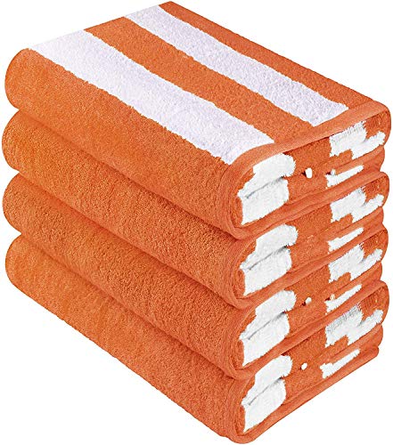 Utopia Towels Large Beach Towel, Pool Towel, in Cabana Stripe - (Orange, 4 Pack, 30x60 inches) - Cotton