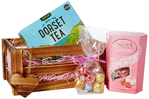 Moreton Gifts Strawberries & Cream - For You Crate - By , Lindt Chocolate, Dorset Tea Hamper - Mother's Day, Summer
