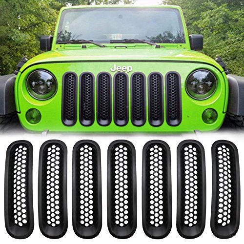 Danti Black Front Grill Mesh Grille Insert Kit for Jeep Wrangler Rubicon Sahara Jk 2007-2017 (7Pcs/Set)